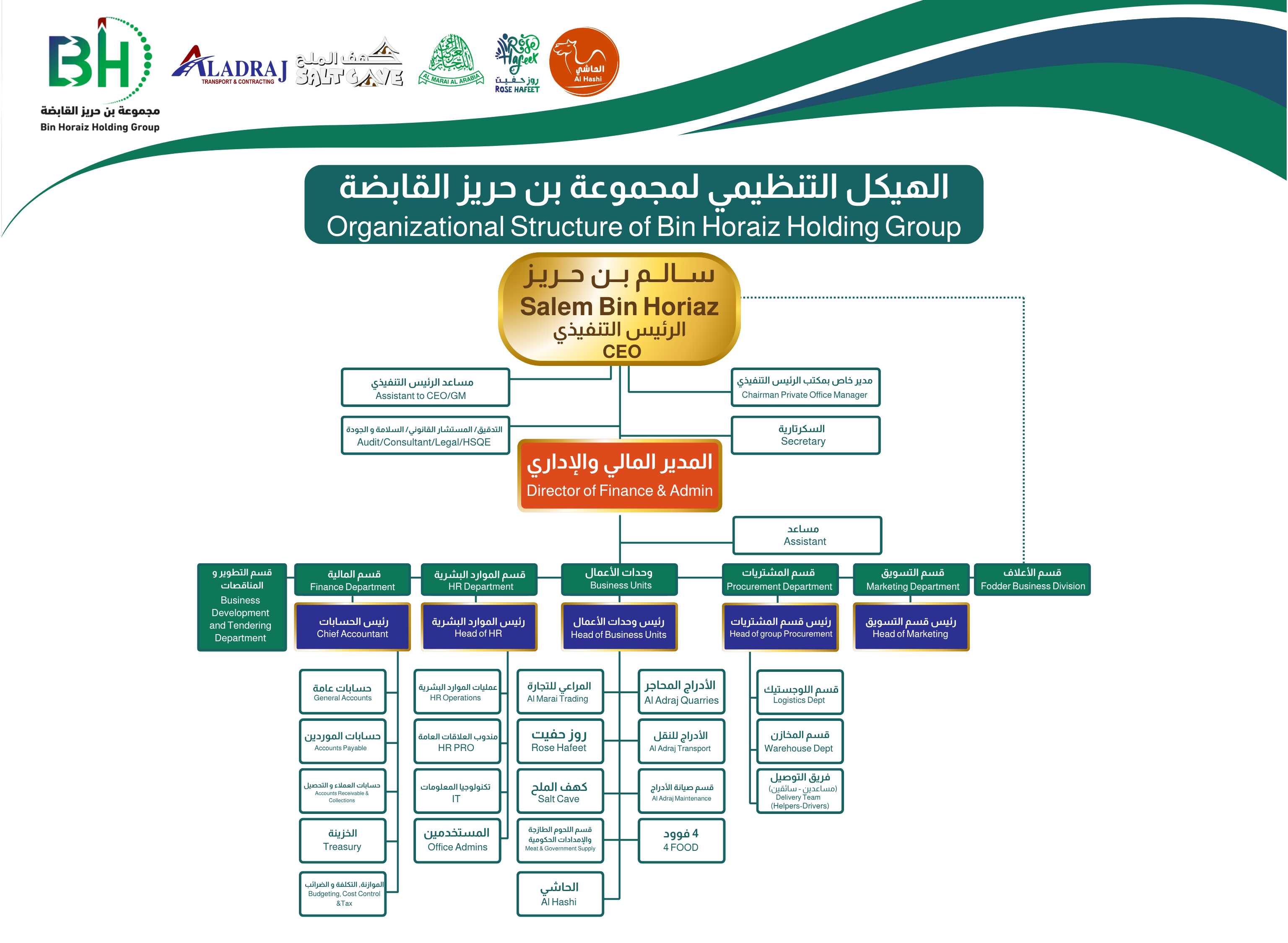 هنا نعرض شجرة الهيكل التنظيمي التي توضح ترابط الإدارات والأقسام.